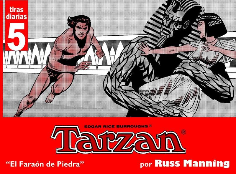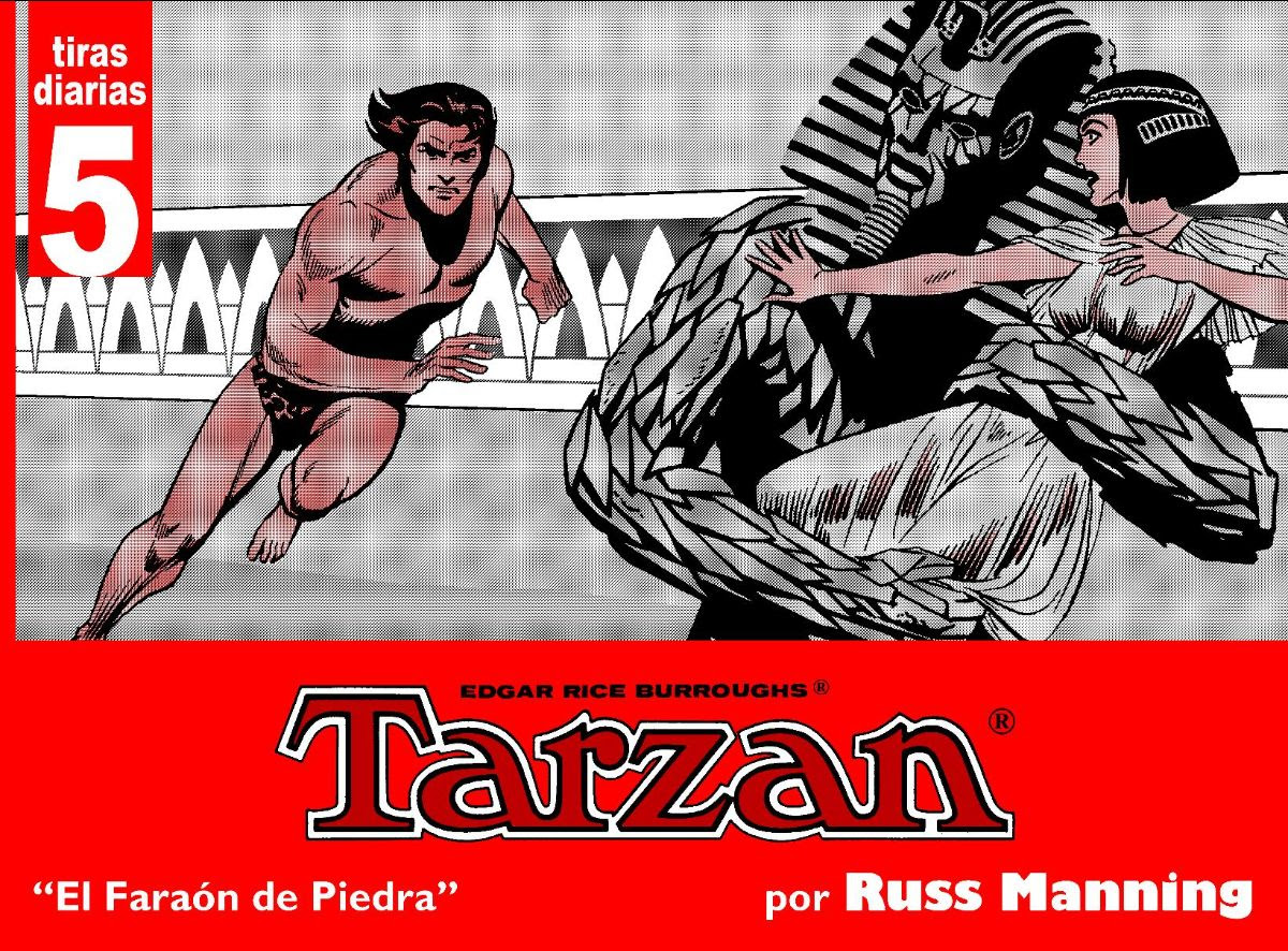 Tiras diarias de Russ Manning del 8 de octubre de 1970 al 26 de junio de 1971. "El trabajo de Manning en sindicación abarca desde 11-XII-1967 a 29 VII-1972 en la tira diaria, y desde 14-I-1968 a 24-6-1979 en las páginas dominicales a color. Las amplias posibilidades de narrativa y diagramación presentes en el comic book no existen en el enclaustrado medio diario. El profesionalismo y la brillantez de un autor maduro se adaptan al limitado espacio consiguiendo una confección y textura extraordinarias. En los cinco años en el que permanece en él, y a un ritmo de trabajo frenético, escribe y dibuja siente historias basadas en la cosmología burroughsiana, dilatando hasta su límite las posibilidades expresivas, a base de panorámicas, viñetas secuencia y profundidad de los encuadres que dotan de escenario convincente el universo fantástico de su autor literario. Cierra cuarenta y tres años de dailies de manera tan brillante como su trascendental inicio, dejando para el olvido treinta y ocho años de historias oscuras. Las historias de Tarzan realizadas por Russ Manning representan la mejor adaptación del mito selvático al cómic."