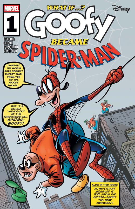 ¡La asombrosa fantasía de Goofy! Goofy se convierte en Spiderman, en este relato en que tendrá que aprender la lección definitiva sobre la responsabilidad. Además: en este cómic verás a tus personajes favoritos de Disney caracterizados como La Primera Familia de Marvel. Mickey con poderes elásticos, Minnie con capacidad para volverse invisible, Goofy enciende su llama, Donald se convierte en roca... con estos increíbles poderes, son Los 4 Fantásticos. Y también: Mickey y amigos se convierten en Los Vengadores y Donald se transforma en Iron Man.