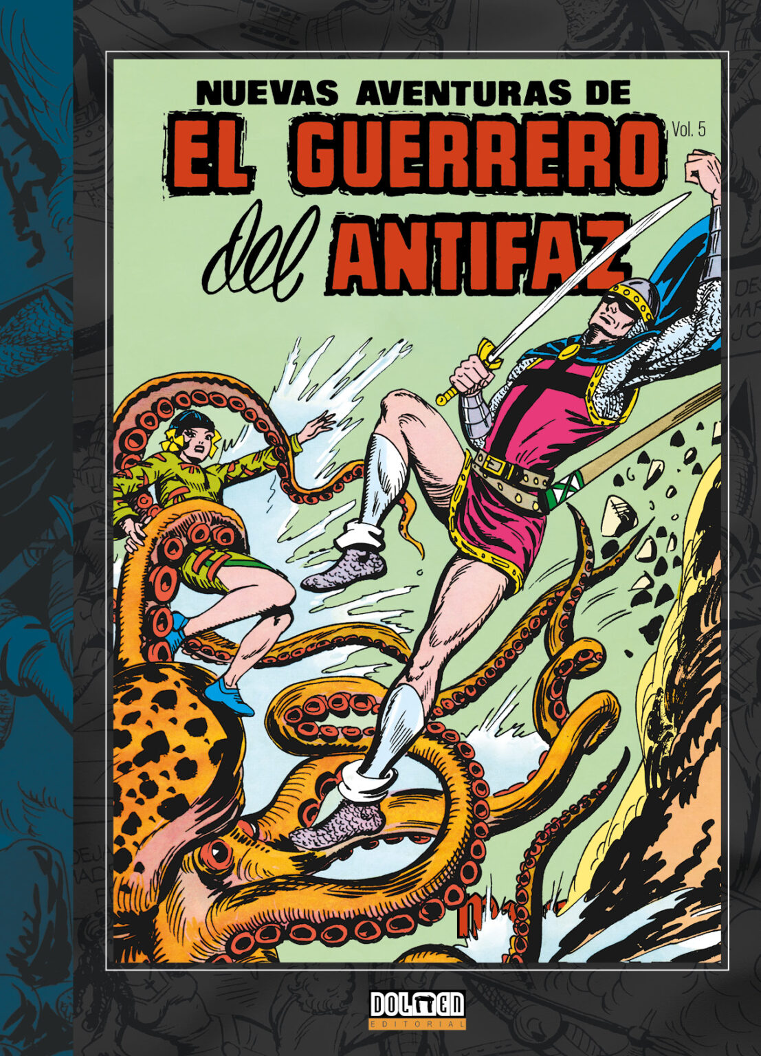 Este quinto volumen continúa la reedición y restauración de las Nuevas Aventuras del Guerrero del Antifaz del gran Manuel Gago. Estas páginas incluyen diez nuevos capítulos originales, llegando así hasta finales de 1979, junto a una gran cantidad de extras, incluidos los cromos originales creados por Gago que narraban el origen del Guerrero de manera extensa.