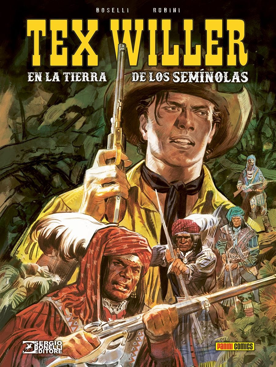 El agente federal Brian Carswell tiene una misión especial, que pretende llevar a cabo con tenacidad y perseverancia en todo Estados Unidos de América: ¡capturar a Tex Willer! Para escapar de la caza del implacable sabueso, nuestro solitario forajido acaba en Florida, donde durante treinta años, en los pantanos infestados de serpientes venenosas y feroces cocodrilos, se ha librado una sangrienta guerra entre el ejército estadounidense y la tribu india de los seminolas. En un torbellino de aventuras y giros, primero un soldado, luego un desertor y finalmente un traidor que se ha pasado al enemigo, Tex se encontrará luchando no solo por su vida, ¡sino por la salvación de todo un pueblo!