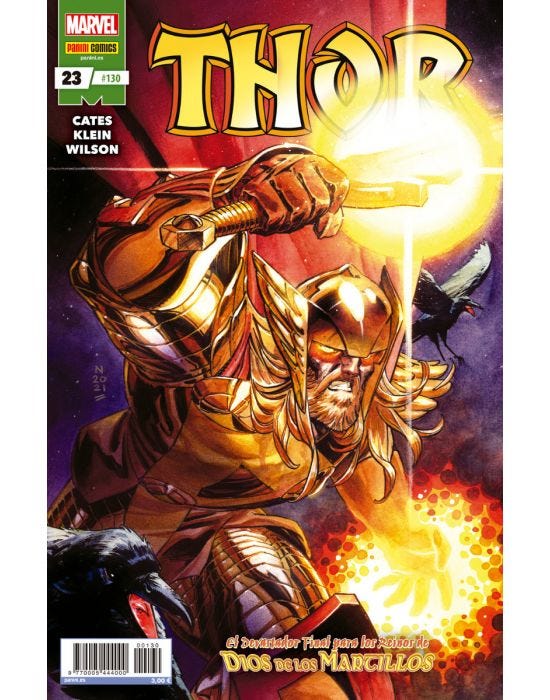"Con el desenlace de ""Dios de los Martillos"". Después de haber sufrido una pérdida terrorífica y trágica, Thor está más determinado que nunca a finalizar su batalla contra el Dios de los Martillos. ¿Pero puede alcanzar el triunfo si Mjolnir no se encuentra de su parte? En la última página, su vida habrá cambiado irrevocablemente."