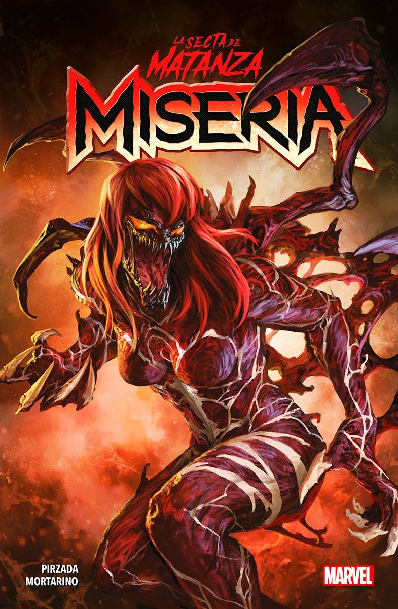 ¡La madre de todas las guerras de simbiontes! Liz Allan, la madre de Normie, vive feliz en la ignorancia. Desconoce que su hijo es el Duende Rojo. Pero algo extraño está ocurriendo con ella. Después de que una ola de violencia la arroye, usará sus recursos como jefa de Alchemax para convertirse en algo que el Universo Marvel nunca había visto. Llega: ¡Miseria!
