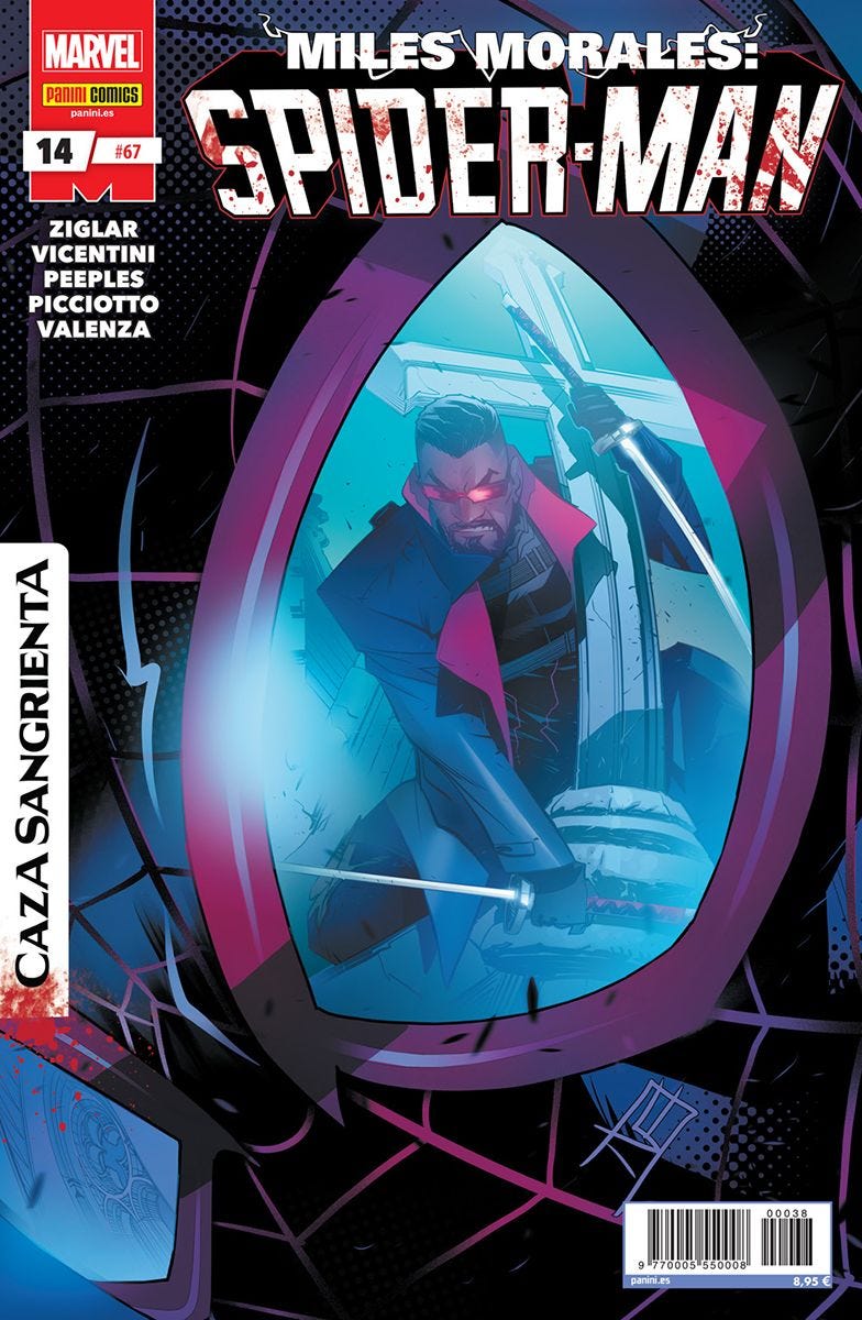 Cruce con Caza sangrienta. Interminables hordas de vampiros sedientos de sangre asolan la Tierra bajo un cielo eternamente negro, como la boca de un lobo. Blade tiene un plan y la última esperanza de victoria reside en Miles Morales. Pero quizás éste no esté dispuesto a pagar el alto precio que eso ...