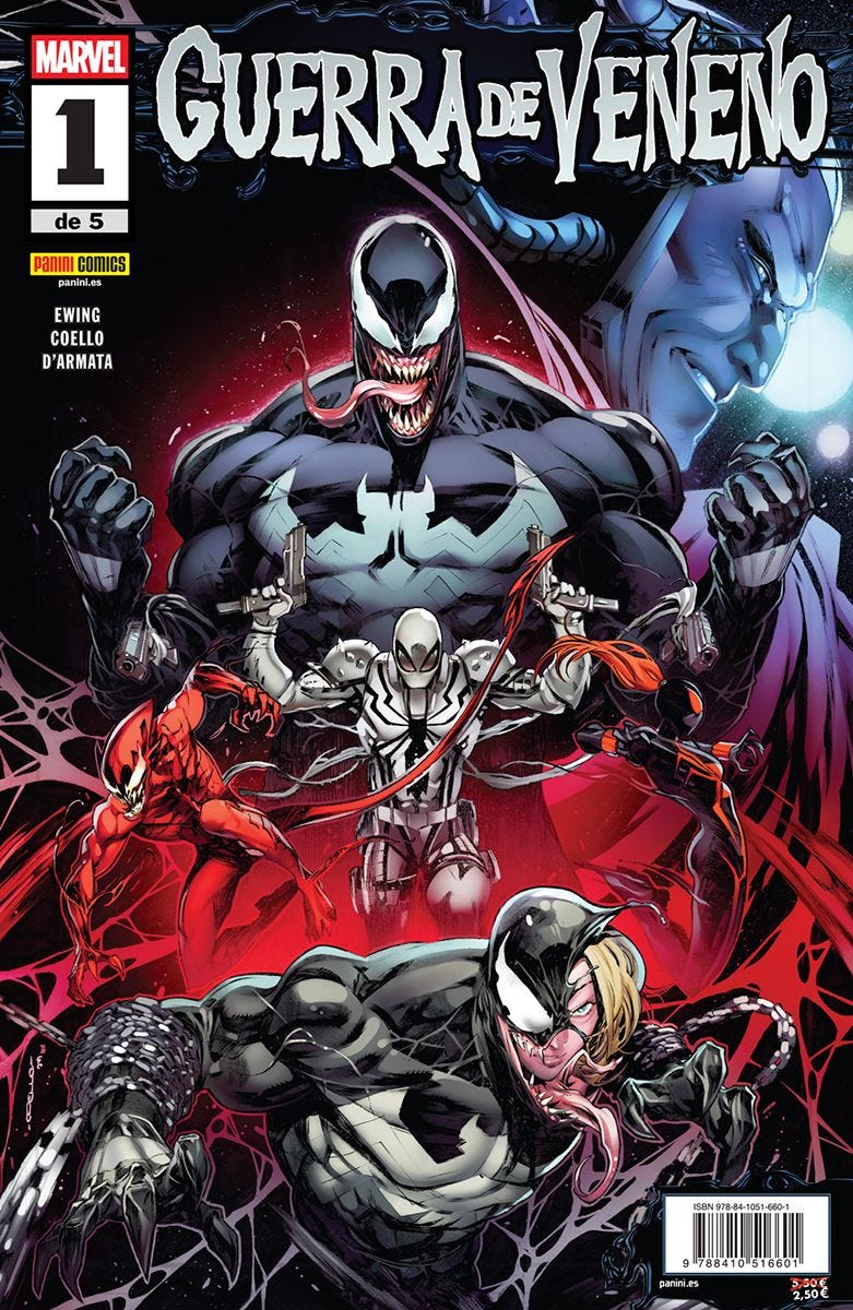 El simbionte de Veneno se ha ligado a Eddie Brock y a su hijo Dylan en diferentes momentos. Ahora, ambos Brock entran en colisión por el nombre de Veneno. El choque de padre contra hijo amenaza con romper su mundo en pedazos. Al Ewing e Iban Coello narran la batalla de simbiontes que no esperabas.